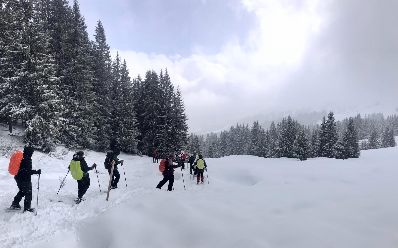 3 heures de randonnée en raquette avec un accompagnateur montagne diplômé.